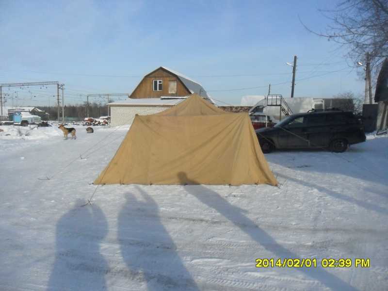это же солдатская палатка.на отделение.на 11 человек.ставится на 3 палках и на 4 растяжках.будет где кости бросить