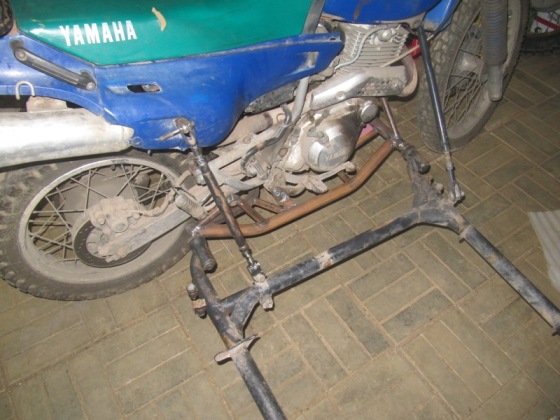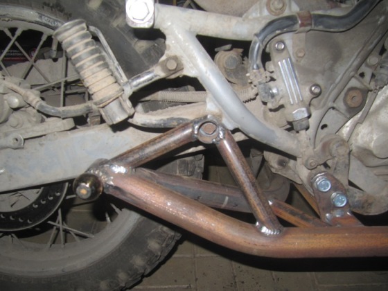 закончил изготовление крепления коляски к Yamaha XT400 Artesia, к шестисотке уже делал, крепление почти идентичное дополнительно сделал крепление за подножку пассажира уменьшающий вертикальные колебания заднего шара и защиту маслоподводящего шланга снизу ДВС.