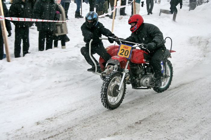 Красота ) уралы на трассе в последний раз давно видел , во Фрязино М.О. на 23 е катались, так же заезды одиночек разных классов. Захватывает ! без шипов по льду 3 года назад ребята из Мытищ порадовали своим заездом, я не думал что так можно ездить ) Интересно было бы где нибудь у нас посмотреть любые соревнования.