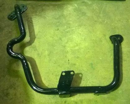 Не то, чтобы усилил, скорее создал её часть. Вот такой получился подрамник (так его назовем) - две половины креятся в местах крепления двигателя к раме и в местах крепления водительских подножек, а также соединяются между собой.