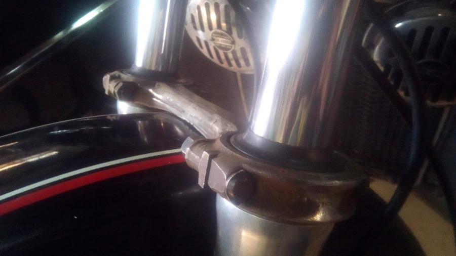 Отпилил верхнюю головку чтобы можно было зажать в мой токарный, проточил, одел на вилку, схватил сваркой, снял, прихватил к швеллеру, чтоб не повело, обварил, счистил всё лишнее.
