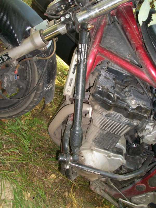 Про нижнее расположение демпфера имею тоже такое мнение. Но Андрей утверждает что никаких проблем не видит и не испытывает. Из своего опыта могу сказать следующее: демпфер необходим. И пусть он будет, чем будет отсутствовать. Когда на урале делал рычажку с нулевым вылетом, то без штатного демпфера ехать было вообще не комфортно. Тут уж нужно либо считать, либо делать эксцентрики для подбора наклона. Т. е. делать серьёзную конструкцию по типу как на КТМ и не только. На одиночке XJR тож колбасит руль и Тёмыч это уже описывал. Я тоже это заметил. Всё немало уже на нём проехал.