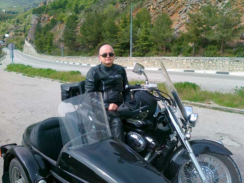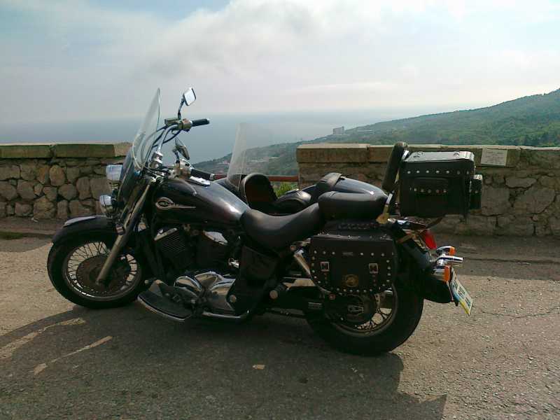 До Сочм не добрался.Это фото с ЮБК. Ехал из Севаса в Ялту. Хонда 750 обычная.2001 года.Брал 4 года назад в Одессе за 8,5 килобаксов. Коляска обошлась в 400 грн (50 бакинских)а вот перекраска в 4000(соответсвенно 500