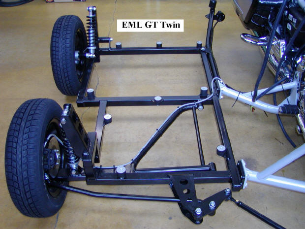 В итоге переделал, что видим на нижнем фото, - отодвинул ось шарнира от рамы на тоже расстояние, на котором от рамы находится нижняя сторона рессорного листа. В порожнем состоянии развал нормальный, но когда загрузит - уплывёт...