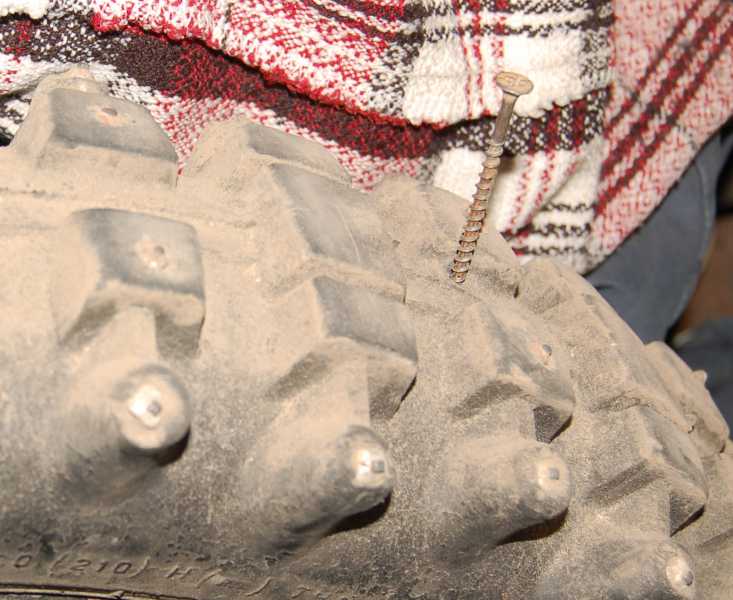 Саморез, что на фото, обнаружил при подготовке к этому зимнему сезону. То-то, думаю, в конце прошлого сезона день катаюсь, а на следующий или через неделю - колесо качать надо!