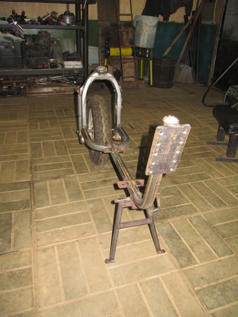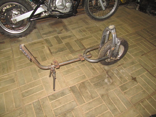 Сделал в целях эксперимента ходовую часть одноколесного буксируемого прицепа, пока для знакомого, себе буду делать по тому же принципу с использованием части передней вилки от скутера.