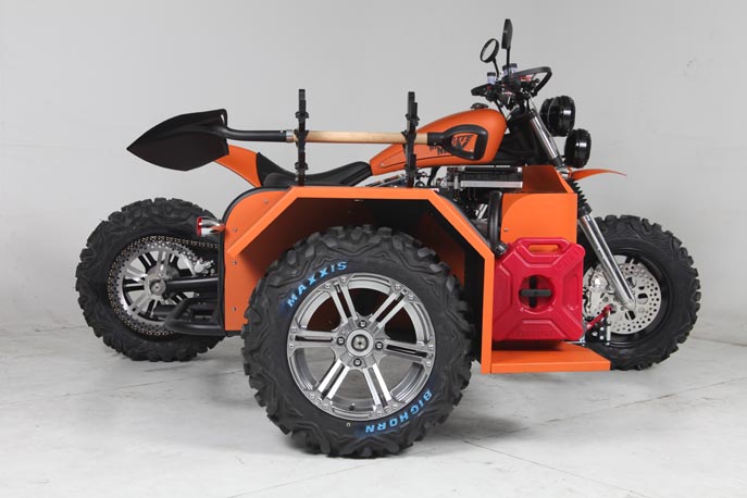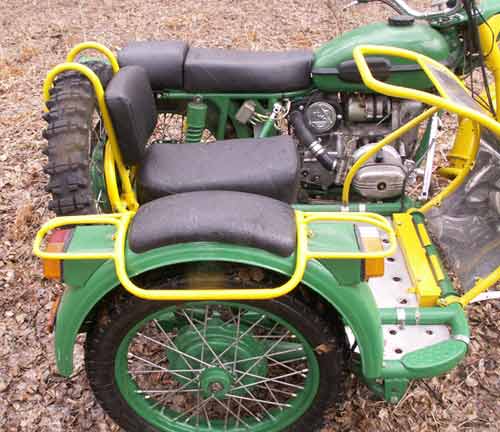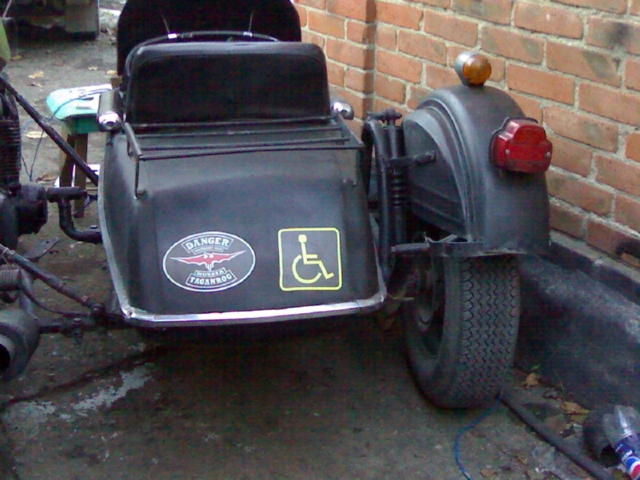 Колесо с барабанным гидравлическим тормозом, его буду подключать этой зимой. Колесо коляски - строго посередине между передним и задним мотоцикла.