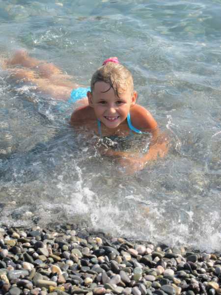 Утром нас накормили вкуснейшим домашним хачапури и Лена провела для нас обзорную мини-экскурсию по посёлку. Купить можно всё, что нужно, есть две аптеки, салоны связи, куча кафешек. Купили местную СИМку, оператор называется AQUAFON. Присмотрели кафе под названием "Легенда", где одним первым наедаешься до отвала)))) Работает кондей, крутят мультики-фильмы на проекционнике... И цены вполне разумные. Например, убойная порция очень вкусной сборной мясной солянки стоит 160 рублей. Кстати, официальная валюта - российский рубль. Потом взяли мою крестницу-племянницу и пошли на море.