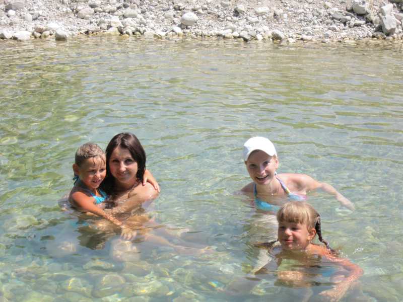 За домом протекает горная река, которая впадает в море и в которой можно смыть морскую соль, если только вы не боитесь ледяной воды. Я вот боюсь и потому стоял на берегу с фотоаппаратом в руках)))