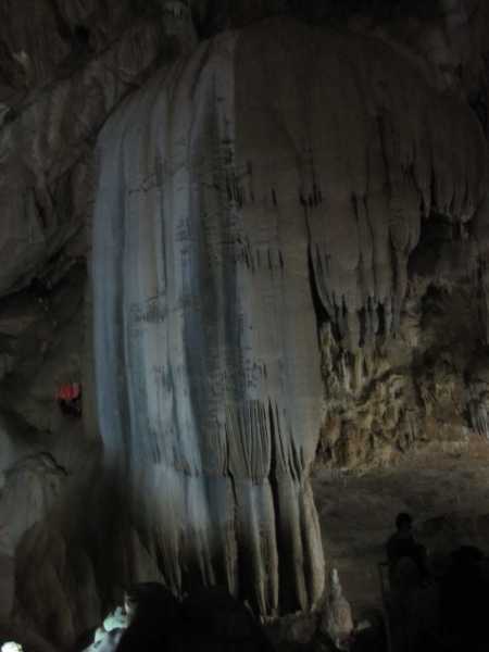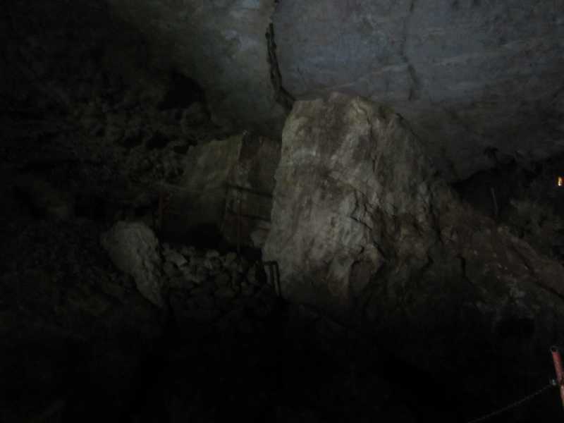 Начали с Новоафонской пещеры . Билет 300 рублей плюс 30 за фотосъёмку. Группа набирается очень быстро. Грузимся в миниатюрный поезд метро . Несколько минут пилим по тоннелю, стены которого то бетонные, то вырублены в скале, попадаем на станцию и проходим по коридору в пещеры. Вот где впечатляет!!! От дна до потолка первой же пещеры 70 метров! Ты стоишь примерно посредине этой высоты на огороженной бетонной площадке, где-то внизу озеро приличной глубины, не запомнил какой, и приличного размера. Далее экскурсовод ведёт по бетонной дорожке длинной 1,5 км и в каждом из шести залов, доступных для осмотра, рассказывает о пещере. Температура 10-12 градусов, почти 100% влажность... Верхняя одежда обязательна! А виды какие! Но фотографировать из-за плохой освещённости очень сложно. Вот немного...
