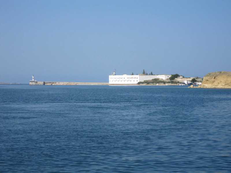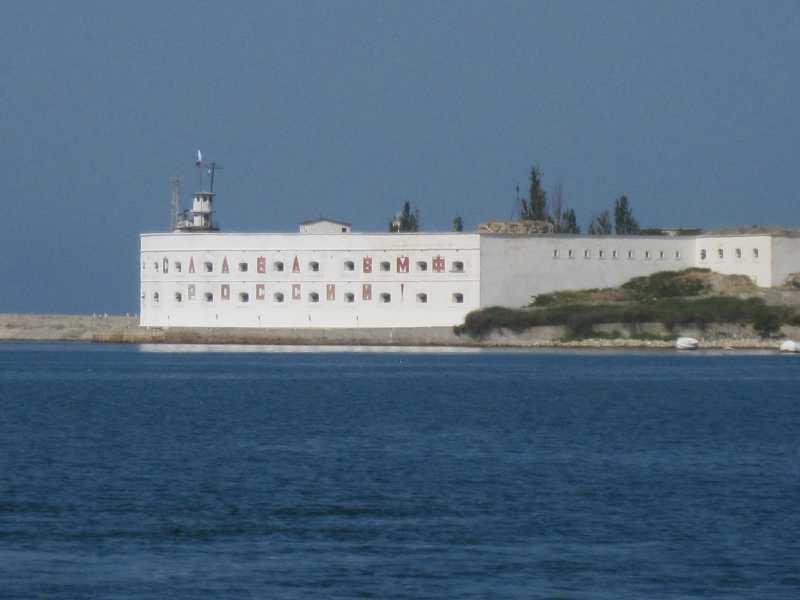 Разгрузили машины, пристроили Парня на стоянку (5 гривен в сутки), сходили в бухту искупались, поняли, что вода там грязная и надо идти на само море. Осмотрелись. Рядом 2 крепости времён Крымской войны . Эта на входе в бухту.