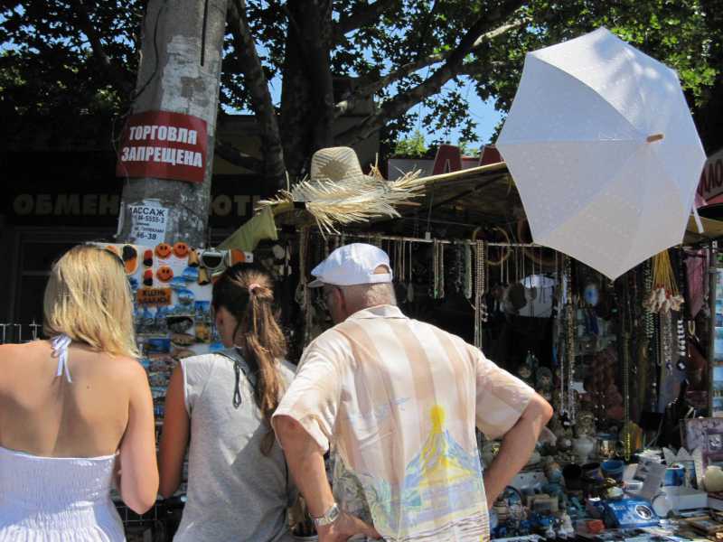 Потом сели на рейсовый теплоход и приплыли в Ялту, микроавтобус тем времен тоже туда приехал. Делать там абсолютно нечего! Даже кабинок для переодевания нет! Чуть ли не на главном курорте Советского Союза нет ни одной кабинки для переодеваний! Стоило заговорить с продавщицей на русском языке, как она тут же перешла на украинский и, ухмыляясь, рассказывала яка вода газованна, а яка нет.