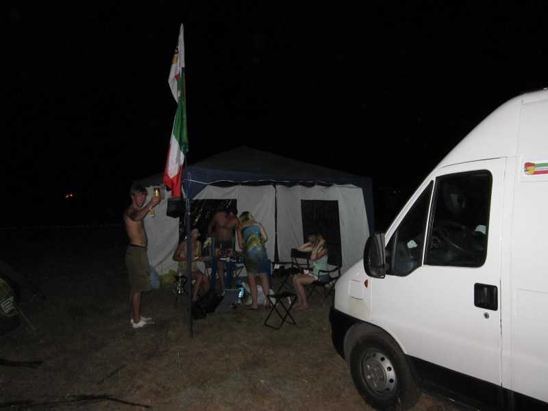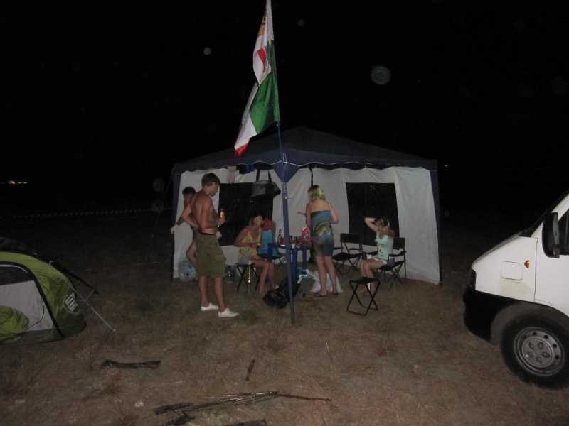 Так же Дукато выручил с разведением огня в мангале. Мы забыли купить жидкость для розжига! Слили солярки с фильтра и ею разожгли угли. А чё? Вполне нормально, тоже парафины, только тяжелее. Надо только несколько раз промешать угли, что б вся солярка выгорела. Неплохая альтернатива. Покушали, попили и улеглись спать.