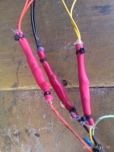 Делая новый жгут проводки, решил не таскать провода от фонаря к фонарю, а сделать разветвление посередине. Помятуя о вечно гниющих разветвлениях Газелевского жгута, решил делать по своему - герметично. А потом ещё и вспомнил джиперские заморочки по прочности. Короче, смотрите...