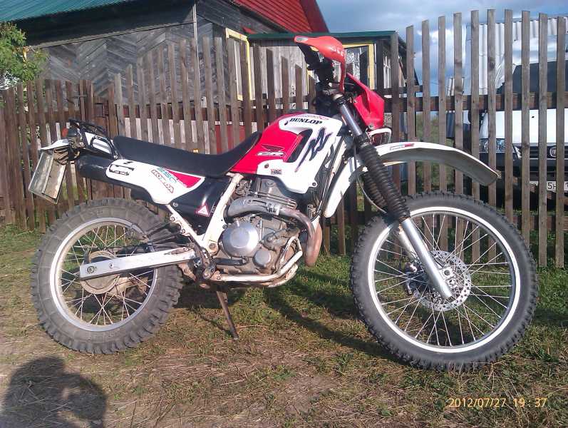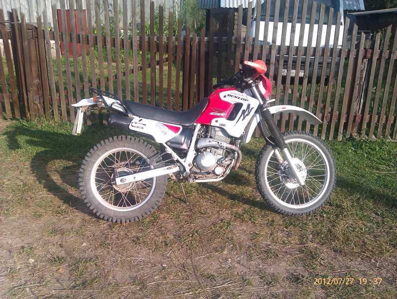 Мот весёлый. 250 кубов, 29 сил, 4-х тактный, водянка, 6-ти ступенчатая коробка, мягкая длинноходная подвеска, мотор не шумный, не сильно вибрирует, здорово тянет с низов и неплохо крутится - по тем дорогам самое оно! Расстояния там небольшие, 20 км максимум, 90-100, а то и 110 позволяет мчать по тем дорогам, только на подножках местами привстаёшь. Больше нафиг мощи не надо, а меньше уже слабоват будет. Знаю, шо Хонда, а шо за модель - х.з.